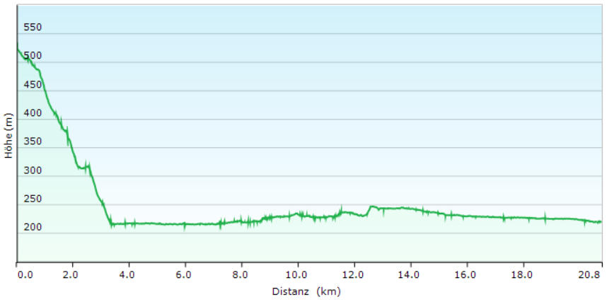 Durch Feld und Wald geht es steil