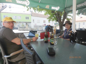 Kaffeepause bei Regina und Harald in Ernstbrunn.Minuten Später war die 9 Km Radler-etappe erreicht.