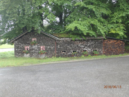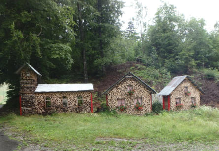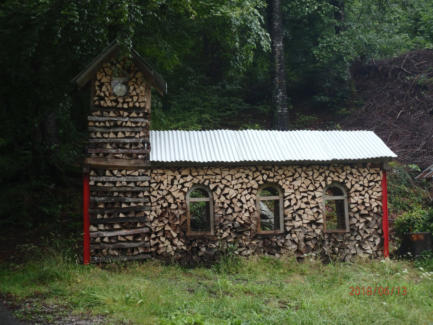 der überaus originelle und liebevoll gestaltete Ortseingang aus gestapeltem Brennholz
