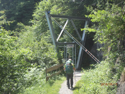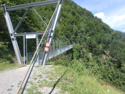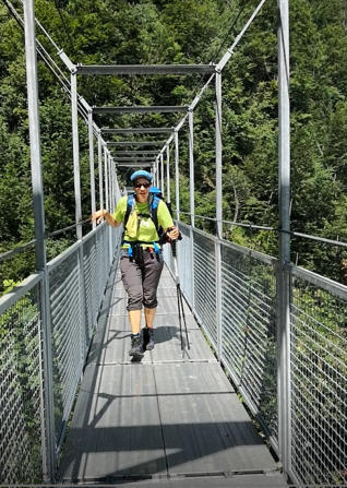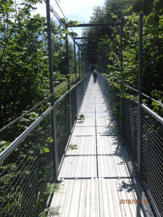 Wir wanken und schwanken auf der Hängeseilbrücke über den Unterweidligraben