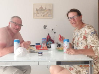 Speck und Eier in der Pfanne, dazu ein Bier - das brauchten wir