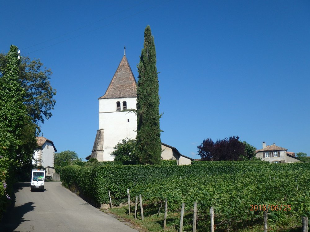 wir starten unsere letzte Etappe in diesem Jahr mit einer Morgenandachtwir verlassen die Kirche in Commugnyder Weg nach MiesEinladung zur Pause