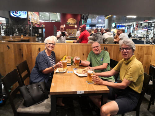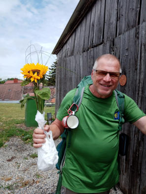 zu meiner Überraschung werden wir dort bereits von meiner früheren Arbeitskollegin erwartet und auf einen Imbiss beim Leberkäs-Pepi eingeladen.Herzlichen Dank für die Einladung und für die gelungene Überraschung