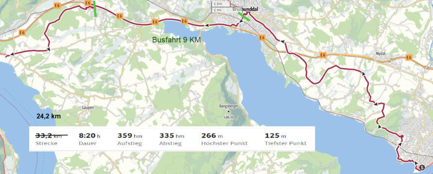 hat. Wir bewegten uns auf Brumunddal zu. Noch eine Autobahnunterquerung und