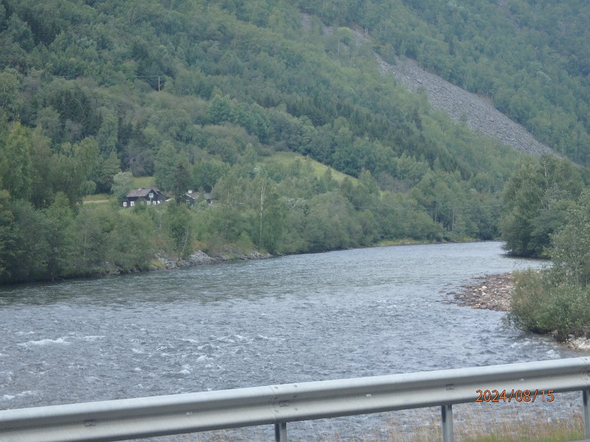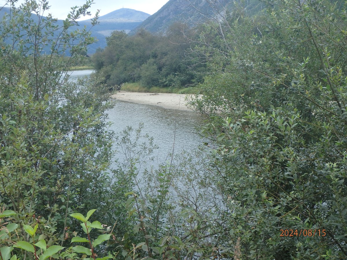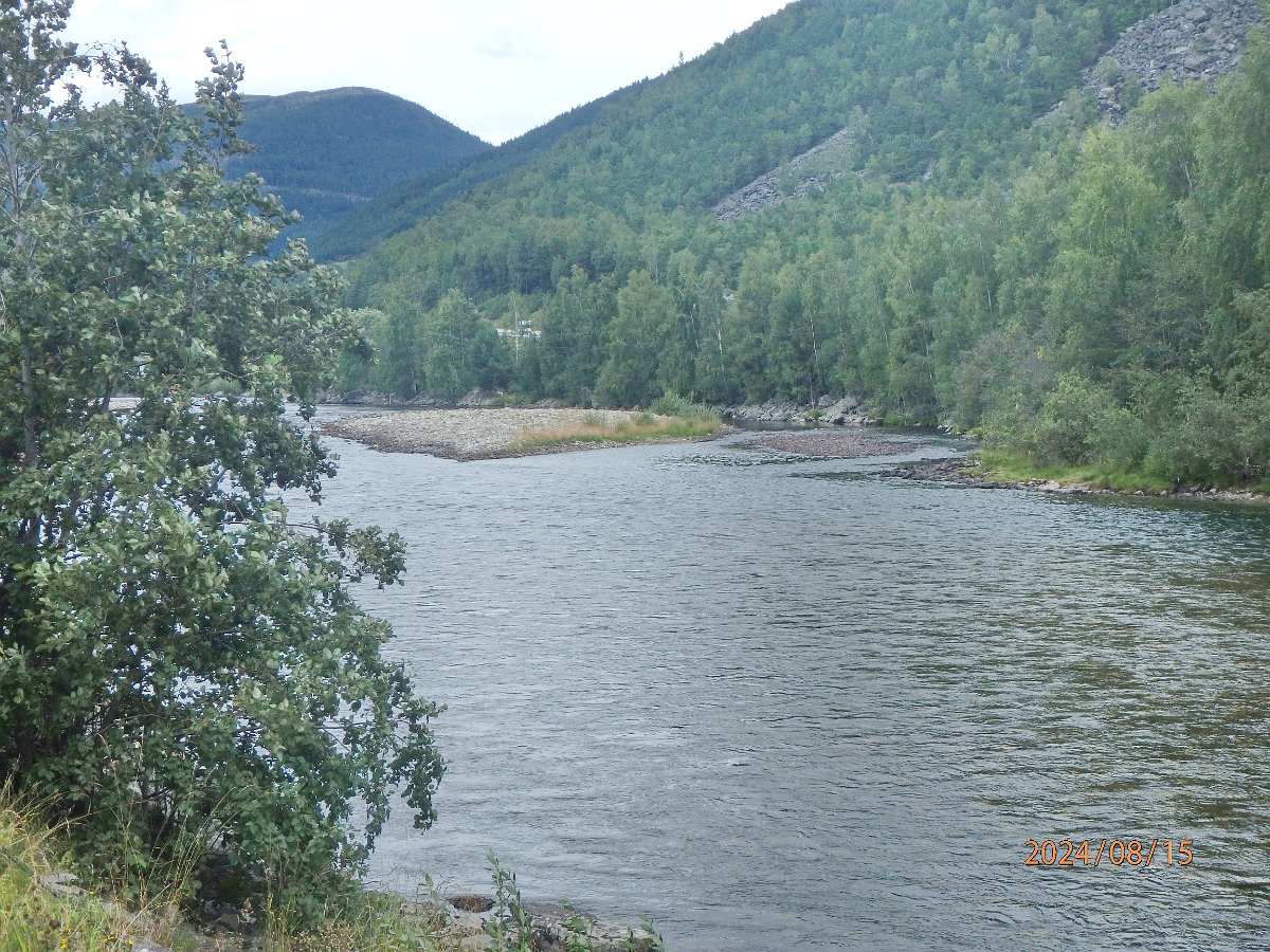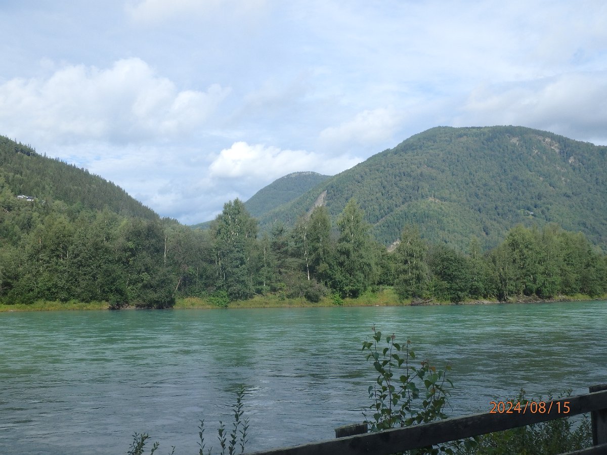 Entlang des Flusses, links und rechts Berge